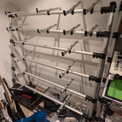 På höger och vänster sida framför dig med lutning har du plats för många 19-tums enheter. har även en vagn extra på hjul som kan följa med vid smidig affär. Här har du plats till många enheter.