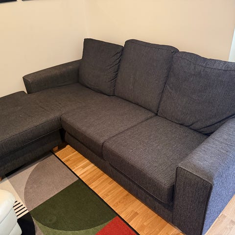Ikea Vimle med förvaring i divanens helt i nyskick. Gunnared mellangrå. Inga fläckar och ej nedsutten. All klädsel är avtagbar och tvättbar även stommen så man kan byta färg och tyg.