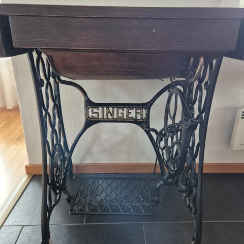 Singer trampmaskin symaskin med träbord