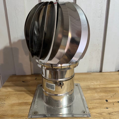 Vind flöjel för skorstensrör helt nytillverkad aldrig använd säljes till ett mycket bra pris. Total längd 720 mm, diameter på insatts rör 120 mm mycket stabil konstruktion sista chansen nu passa på.