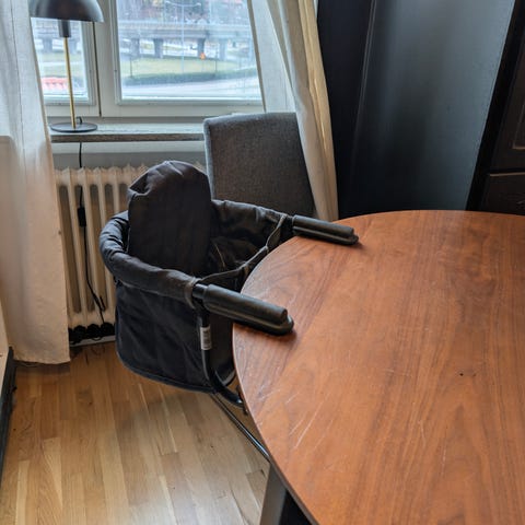 Perfekt när barnet vill vara med vid bordet utan att ta upp plats. Smidig att använda både hemma och att ta med.