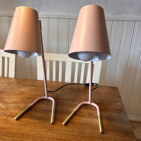 Bordslampor från different design. Metallstomme. skärmen är tyg på plast. Brun med guldiga inslag. Höjd: 62 cm. Höjd: 62 cm.