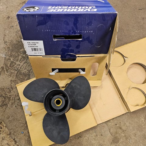1 Rostfri propeller 13 1/2x 23 15 splines, mkt fin - inga skador. Körd på Yamaha 115. Pris 3000 kr