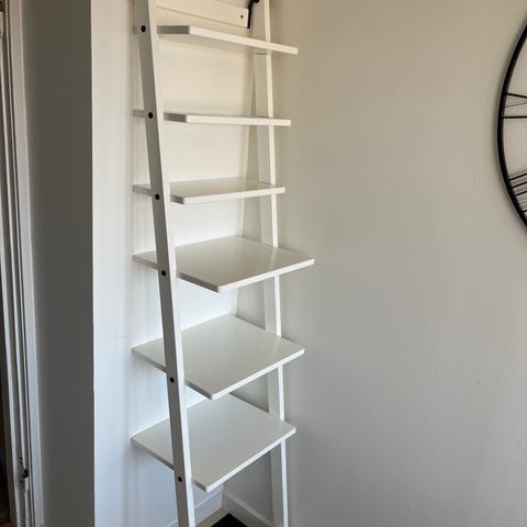 Klassisk steghylla som lutas mot väggen. Perfekt för böcker eller dekoration.