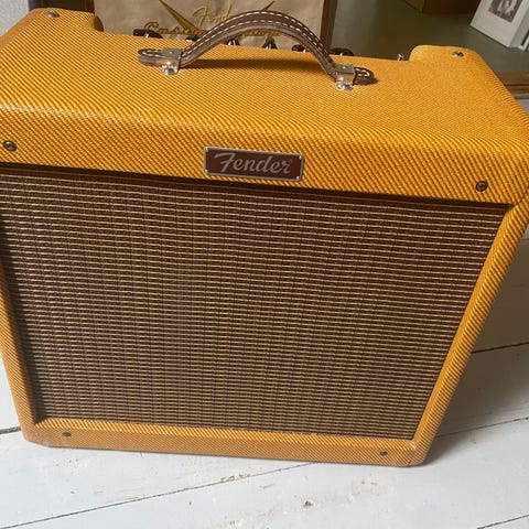 Lappar och manual från Fender medföljer, samt överdrag.