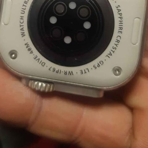 Apple Watch med tillhörande metallarmband i silverfärg. Klockhuset är i mörk färg och armbandet är ett justerbart mesharmband i metall. Produkten är ett tillbehör inom kategorin övriga mobiltillbehör och kan användas tillsammans med kompatibla Apple-enheter som smartklocka och aktivitetsmätare.