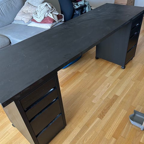 Mindre tecken på användning, små skrapmärken på kanter och ben finns, annars toppen skick!