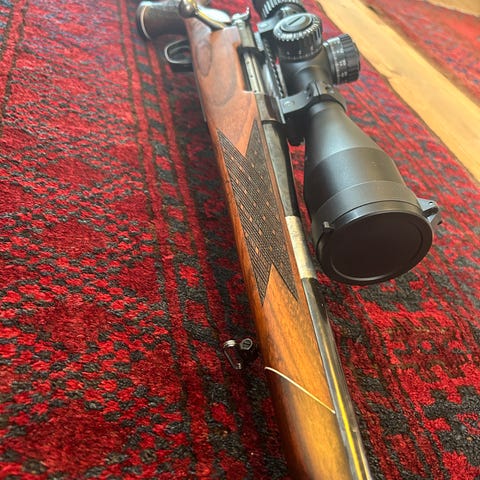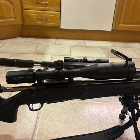 Mycket fin bössa med ljuddämpare.Ny dämpare ny kikarsikte.Mycket bra precions bössa.Ny vapen rem mm.Mycket hög kvalitet på bössan.Är licens pliktig.Säljes eller bytes mot skattad och besiktad bil.LICENS KRAV.Ni som ska köpa vapen tänk på att ni är det kort tid på licens ansökan blir mycket längre fram.Bara siktet och dämparen kosta över 9000.Så priset är bra med tanke på allt nytt