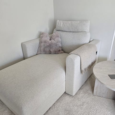 Rygg och sittdyna har avtagbar klädsel och tyget går att tvätta i maskin på 30°.