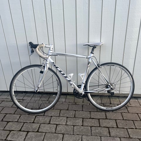 Cykeln är i fint skick och har alltid förvarats väl. Väldigt responsiv och bekväm – en riktigt bra allround-racer.