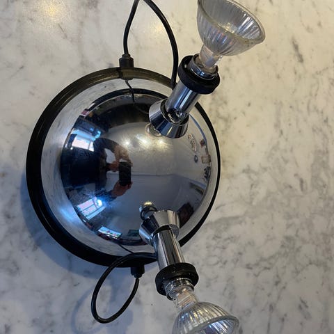 Ikea taklampa i metall med kromfärgad yta. Lampan är avsedd för montering i tak och har en skärm i metall som riktar ljuset nedåt. Den är utrustad med takkopp, elkablar för anslutning samt strömbrytare på sladden. Passar för användning över bord eller i allmänbelysning där riktat nedåtriktat ljus önskas. Ljuskälla ingår normalt inte utan väljs efter önskad ljusstyrka och sockeltyp som passar armaturen.