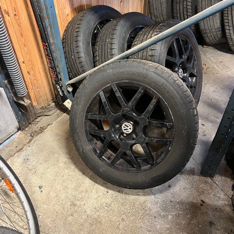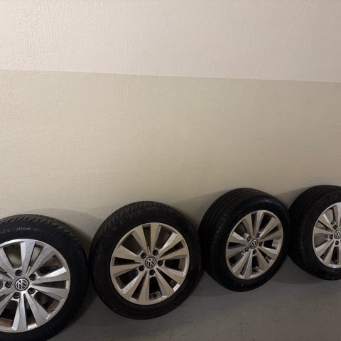 Mycket fina sommardäck på original VW-fälg helt utan skador och skrap. Ca 500 mil sedan nya förra sommaren och 6mm mönsterdjup kvar. Hankook Evo2. Tillverkningsår 2024. Nypris för däcken på dack365.se är 950kr/st.
