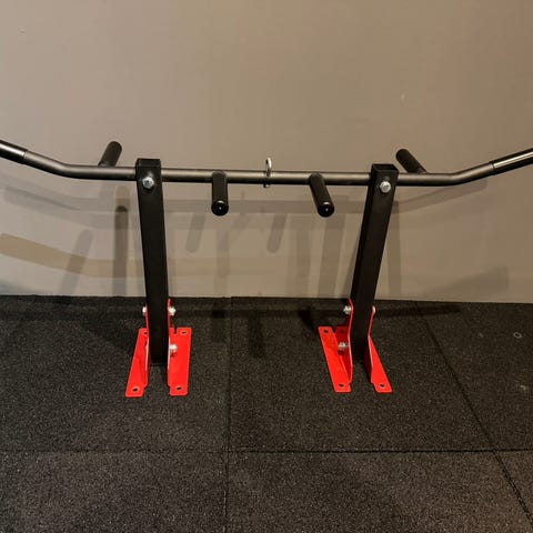 Ställbar skivstångsställning i svart metall. Består av två separata ställ med justerbar höjd för skivstången samt tvärstag med flera hål för att kunna anpassa bredden. Konstruktionen är av fyrkantsprofil i metall med stabil bas och fötter. Lämplig för styrketräning som bänkpress och knäböj i hemmagym eller enklare träningsmiljöer.