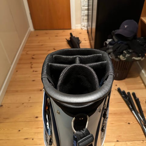 Äldre modell av Titleist tour-bag. 14 delad. I bra fungerande skick.