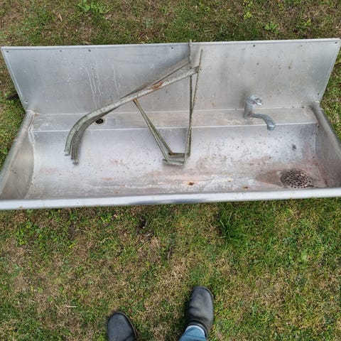 Vask i rostfritt stål från industri. 2 blandare behöver bytas . Mått 2400mm