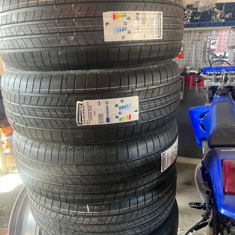Däcken är i fint skick med bra mönster kvar och fälgarna är välvårdade utan större skador, finns några mindre skrap.