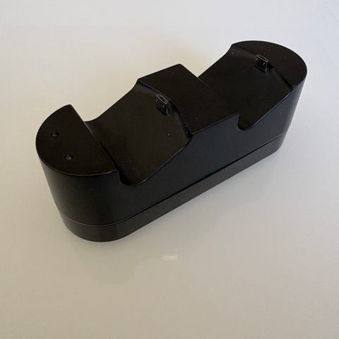 Dubbelladdare för handkontroller med medföljande USB-kabel. Stället har plats för två kontroller samtidigt och ansluts via USB till ditt Playstation 4.