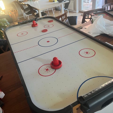 "Air-hockey, air hockey, bordshockey"