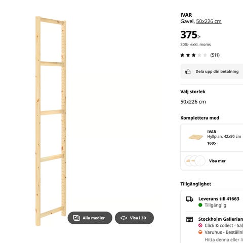 Säljer Ivar hyllsystem i mycket bra skick.
