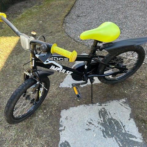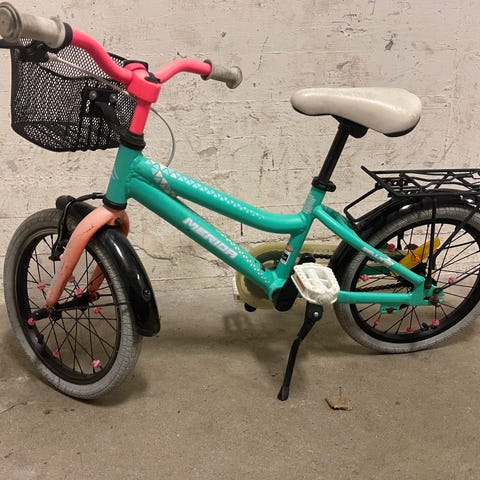 Barncykel i bra skick, redo att använda. Korg och pakethållare. Ringklocka.