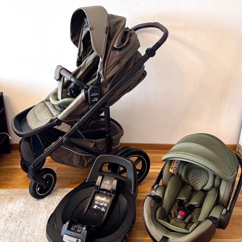 Britax barnvagn med liggdel i svart tyg. Vagnen har sittdel med justerbart ryggstöd, fempunktssele och avtagbar bygel med brunt handtagsskydd. Chassit har fyra hjul och varukorg undertill. Liggdel i matchande svart tyg med madrass ingår, lämplig för spädbarn. Passar för vardagsbruk och promenader med barn i olika åldrar från nyfödd i liggdel till större barn i sittdel.