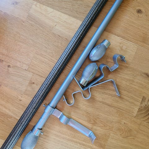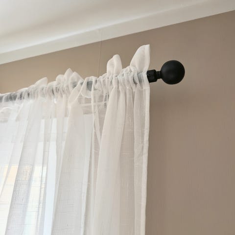 Gardinset stång med ändknoppar ringar och krokar svart metall