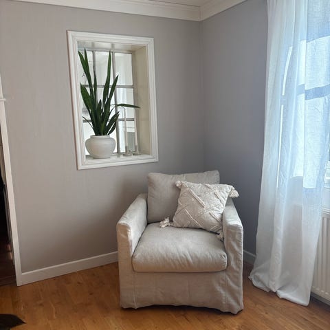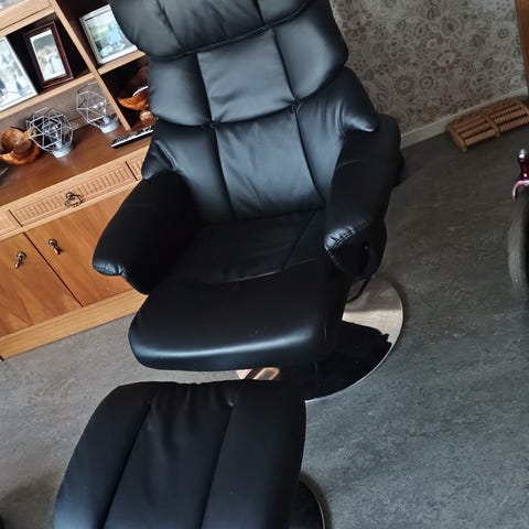 Mycket skön fotölj från Jysk. Kostade över 2000kr MED rabatt när den köptes 2021-2022. Fotöljen är i bra skick i övrigt, men det finns visst slitage på huvudstödet där materialet har nötts bort något efter användning. Rökfritt och djurfritt hem. Endast avhämtning. Kontanter eller swish. Är tillgänglig ofta för avhämtning. Rökfritt och djurfritt hem. Jag kan bära ner den till din bil eller släp.