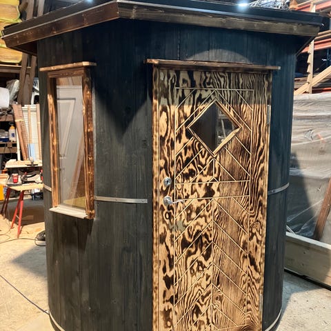 Jag byggde aldrig min bastu på landet, så nu säljer jag dörren som fungerar fint till den lille vedeldade bastun i stugan. 🙂