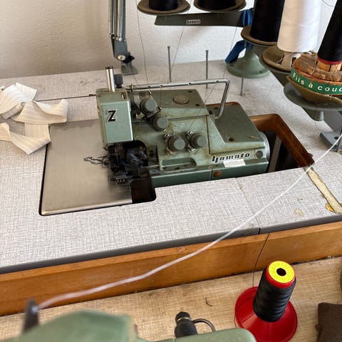 Lewis-Union Special industrisymaskin i grön färg. Maskinen är monterad på bord och är avsedd för professionellt bruk i exempelvis ateljé eller verkstad. 3-fas