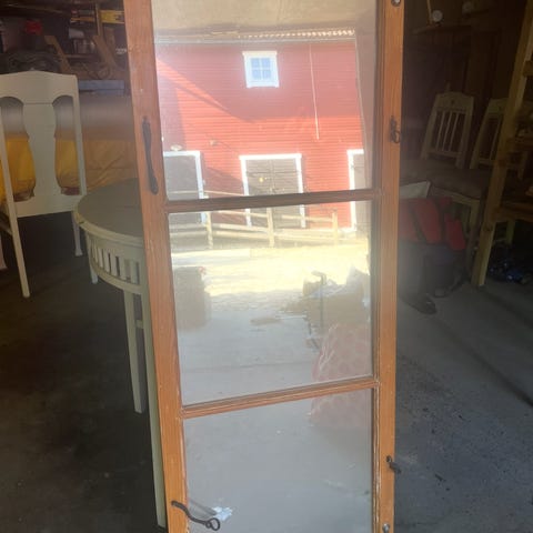 Retro spegel i mörkt trä i gott skick