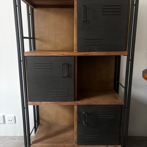 Säljer en riktigt snygg och ovanlig hylla/byrå i industriell stil, helt i plåt/metall. Köpt för ca 8 år sedan och har sedan dess varit en riktig blickfångare i hemmet.