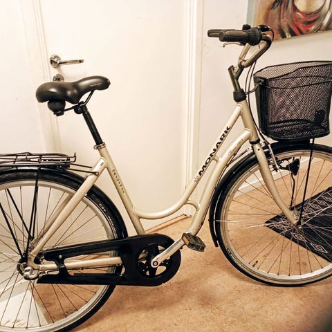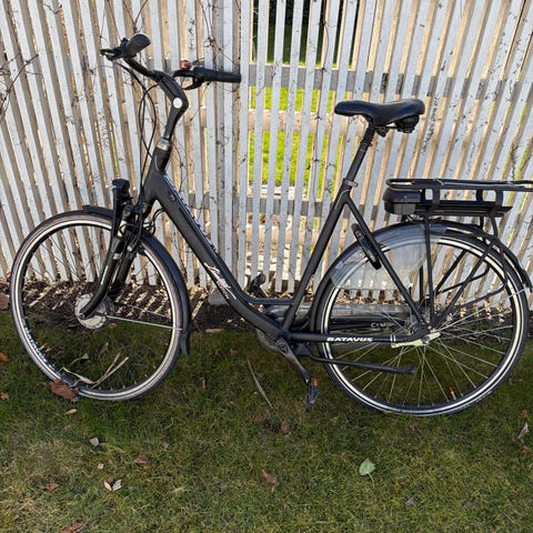 cykel för unisex i svart färg. Utrustad med pakethållare bak, skärmar, stöd och belysning. Passar för vardagscykling och pendling på blandade underlag.