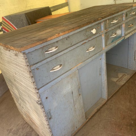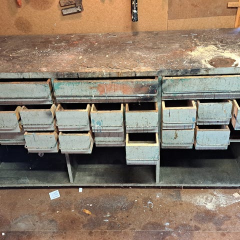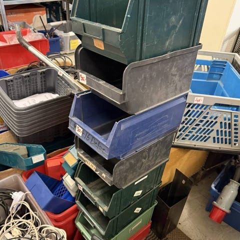 Verktygsskåp med flera lådor och öppna förvaringsfack i olika storlekar. Skåpet är tillverkat i metall och har en grå och grön färg. Utrustat med små plastbackar för sortering av mindre delar. Passar till Volskwagen transporter, caddy samt andra skåp bilar. Skåpen säljs separat. Priset kan diskuteras, kom med förslag!