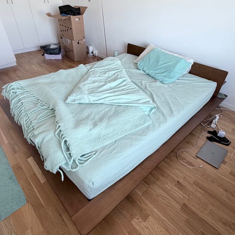 Vi säljer nu vår säng som vi haft i några år. Det är IKEA säng med Malm stomme, en Hemnes madrass (fast) och en Tudal bäddmadrass. Alla är i fint skick, någon liten fläck på bäddmadrassen. Allt är just nu monterat, men vill man så kan man montera ner det på plats. Kan även hjälpa till att bära. Har du frågor så hör gärna av dig!