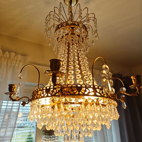 Vacker kristallkrona i mässing