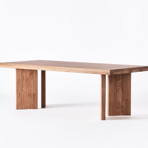 Soffbord med rektangulär glasskiva och underrede i trä. Bordet har en öppen, ramformad konstruktion med rundade kanter och snedställda ben. Passar som vardagsrumsbord eller soffbord där en kombination av glas och trä önskas.