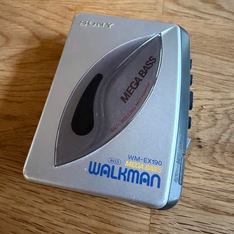 Sony WM-FX193 radio kassettspelare med inbyggd FM/AM-radio. Bärbar walkman-modell med kassettfack på ovansidan och analoga reglage på sidan för volym, band- och radiostyrning. Utrustad med hörlursuttag och bältesklämma på baksidan. Drivs av två AA-batterier (1,5 V). Lämplig för uppspelning av ljudkassetter och lyssning på FM- och AM-radiokanaler.