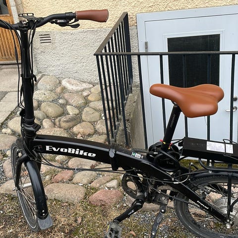 Två snygga Evobikes finns till salu, väldigt lite använda, körda 30 resp 40 mil. Bra batteri. Ihopfällbara. Unisex modell. 7 växlar. Stark bakhjulsmotor. Toppfart 25 km/h. Perfekta city-bikes eller campingcyklar. Vi säljer bara båda två (inte en och en) Vår blandrashund växte lite mer än vi tänkt och får inte plats i korg därbak, så kan det gå:-)...Nya säljs för ca 14 000 kr styck. Vi säljer båda för 18 000 kr. Pangpris!