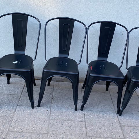 Säljer 4 stilrena och stabila matstolar i klassisk industridesign (Tolix-modell). Svart metall med blank finish som passar perfekt i både moderna och rustika hem.