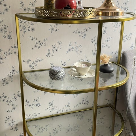 Perfekt för växter, böcker, inredningsdetaljer eller belysning som på bilden.