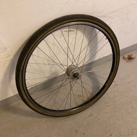 Som bild visar. Lite skitigt förra ägare var lite generös med oljan på kedjan. Skall göra rent så gott som. Oväxlad. Fälg går rakt. 19t drev fotbroms.