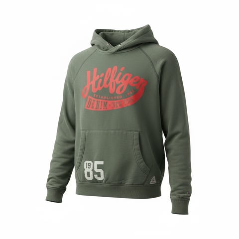 Hoodien är tillverkad av 87% bomull och 13% polyester, vilket ger en bekväm känsla. Passformen är inte specificerad men storleken är Medium.