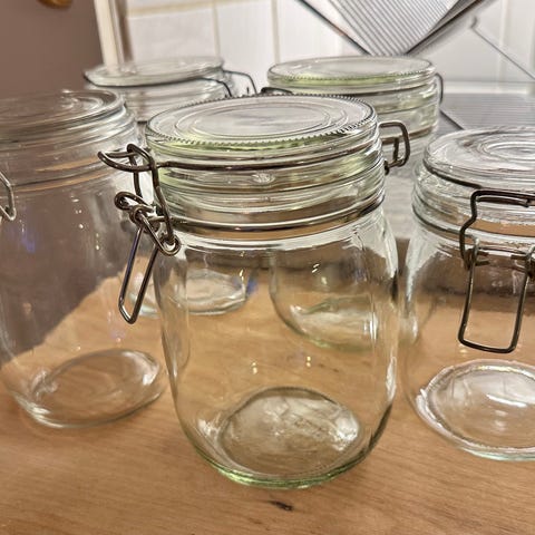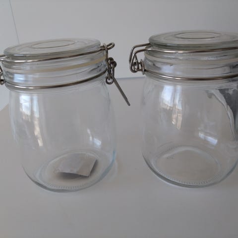 3 glasburkar med lock