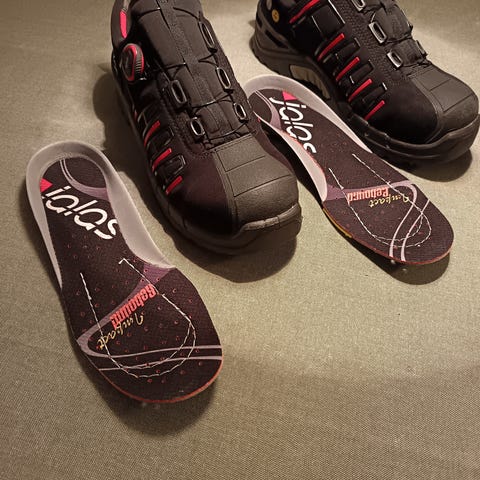 Skorna innehåller en stötdämpande inläggssula och avtagbara inläggssulor för individuell passform och komfort. Materialen inkluderar Jalas FX2 Pro, EVA-skum, PORON®, textil och PU-skum. Skorna uppfyller säkerhetsstandarden EN 20345: 2022 och är ESD-certifierade enligt EN 61340-4-3, vilket gör dem till ett pålitligt val för arbetsplatsen.