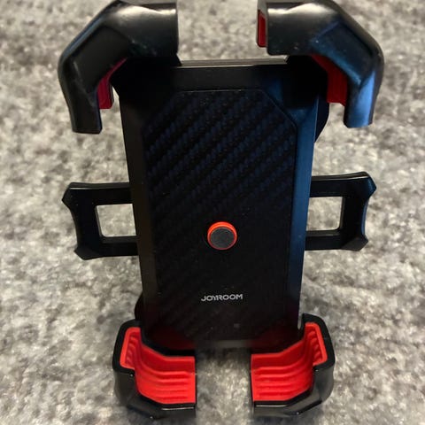 Thule mobilhållare för montering på cykelstyre. Hållaren är svart med blå elastiska band som håller telefonen på plats. Fäste med dubbla skruvar för stabil montering på styre. Passar för olika storlekar på smartphones inom hållarens justerbara bredd. Lämplig för användning på cykel för att hålla mobiltelefonen synlig under färd.