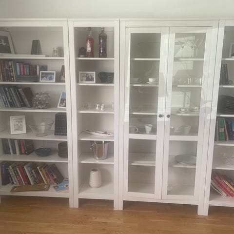 Svart skåp i trä från PB HOME, med grå detaljer på insidan.