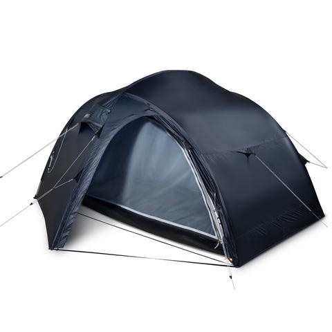 Tåligt vindskydd i tre sektioner med stolpar av stål, Ø 19 mm. Polyesterväv 190 T, som inte prasslar. Vattenpelare 1000 mm. Stormlinor och markpinnar medföljer. Levereras i förvaringsväska.
