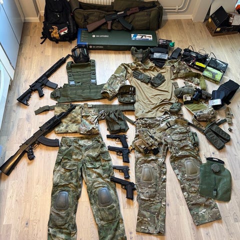 3 stycken airsoft gevär, samt lite gear