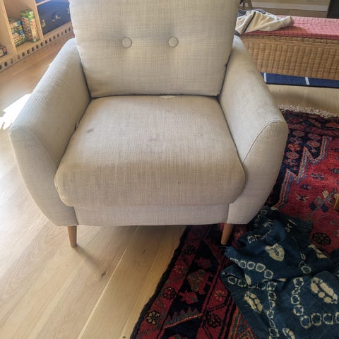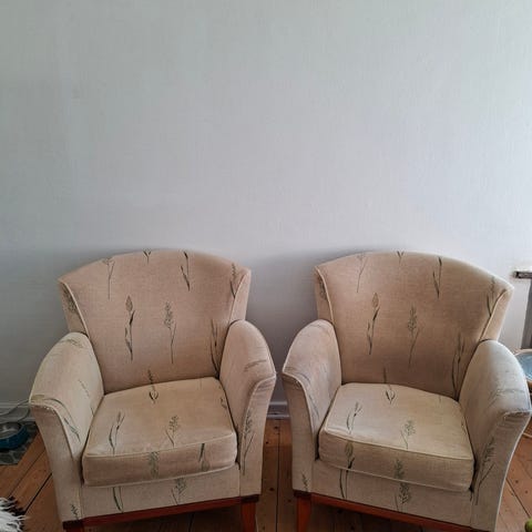 Den ena fåtöljen sparsamt använd den andra mer mer.