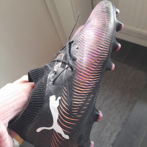 Här är det ett par fotbollsskor som söker ny fotbollsspelare. Det är knytskor med dobbar och med storlek 34. Hoppas nån köper de!!😜